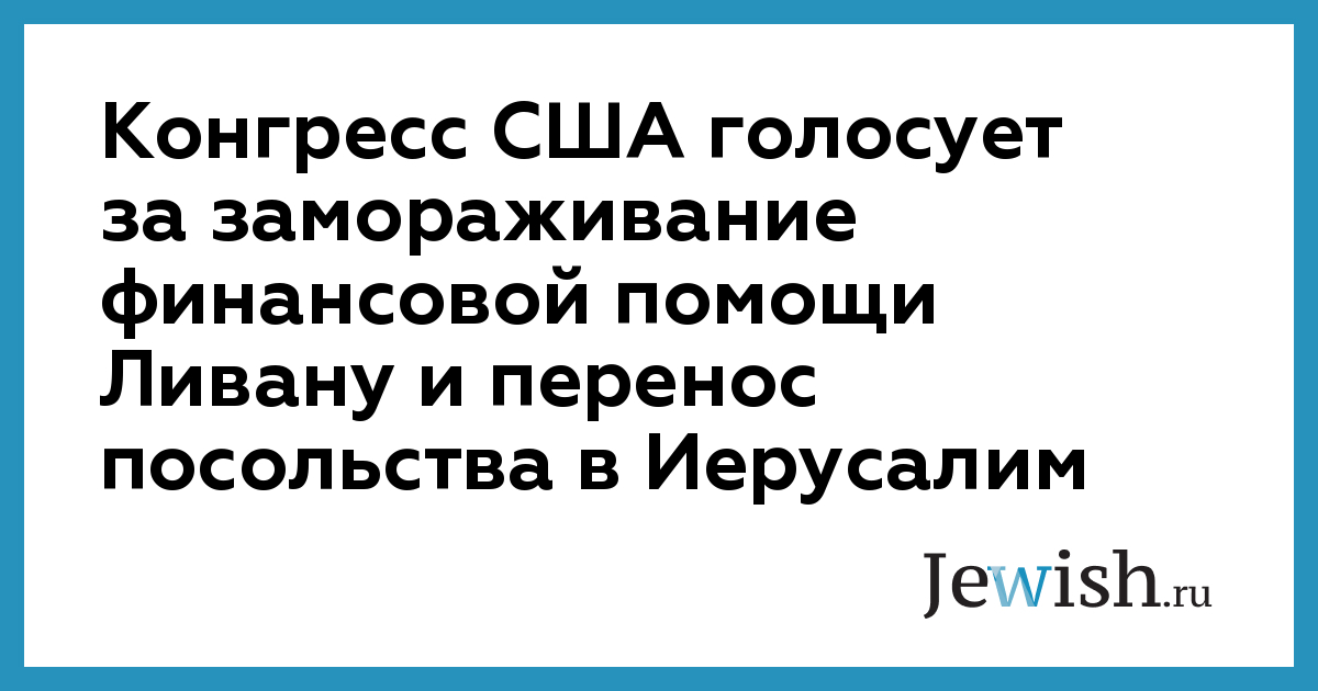 Конгресс США голосует за замораживание финансовой помощи Ливану и перенос посольства в Иерусалим