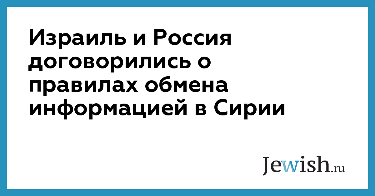 Израиль и Россия договорились о правилах обмена информацией в Сирии