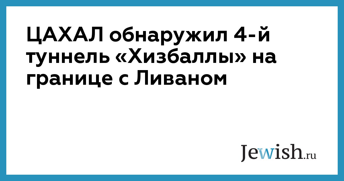 Newsru.co.il со ссылкой на пресс-службу Армии обороны Израиля сообщает об обнаружении очередного, четвертого наступательного туннеля «Хизбаллы» на границе с Ливаном. Точное месторасположение туннеля пока не публикуется. Военные отмечают, что он находится под контролем ЦАХАЛа и больше не представляет опасности для граждан Израиля.