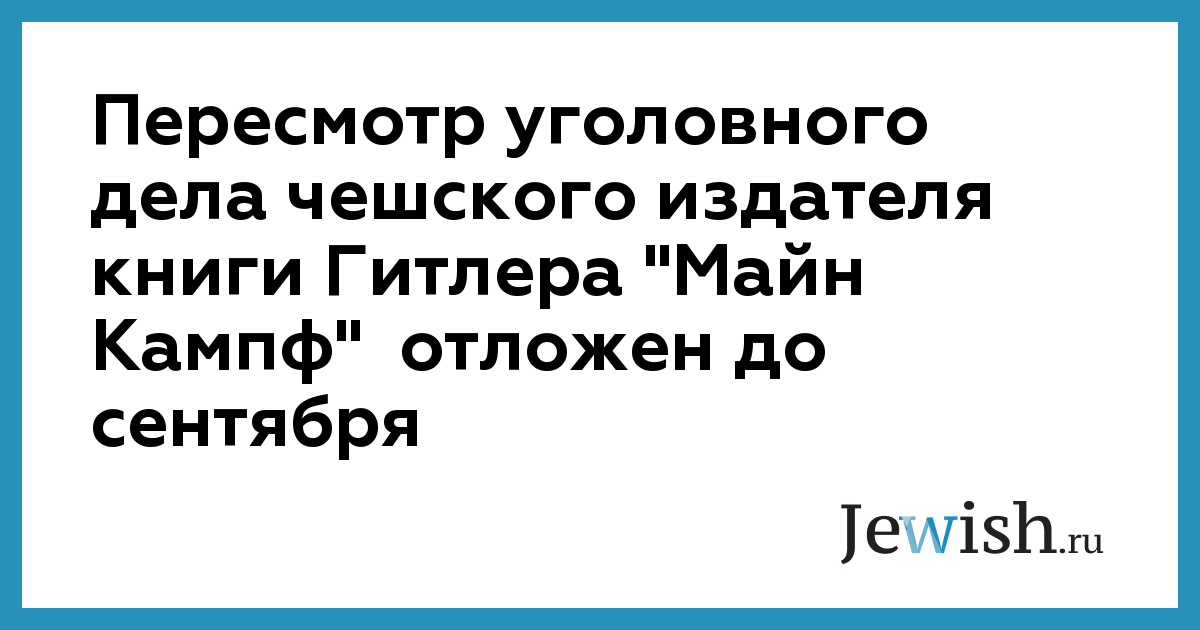 Пересмотр уголовного дела чешского издателя книги Гитлера "Майн Кампф" отложен до сентября
