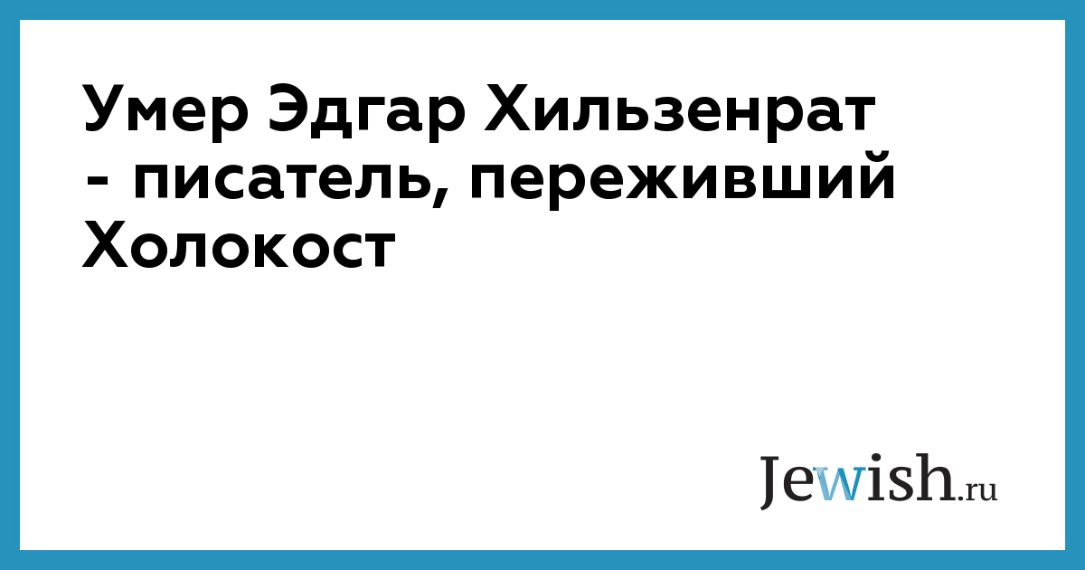Немецкий писатель еврейского происхождения Эдгар Хильзенрат, которому удалось выжить во время Холокоста, скончался от пневмонии на 93-м году жизни. Как сообщает газета «Известия» со ссылкой на публикацию на сайте писателя, о смерти автора сообщили его родственники.