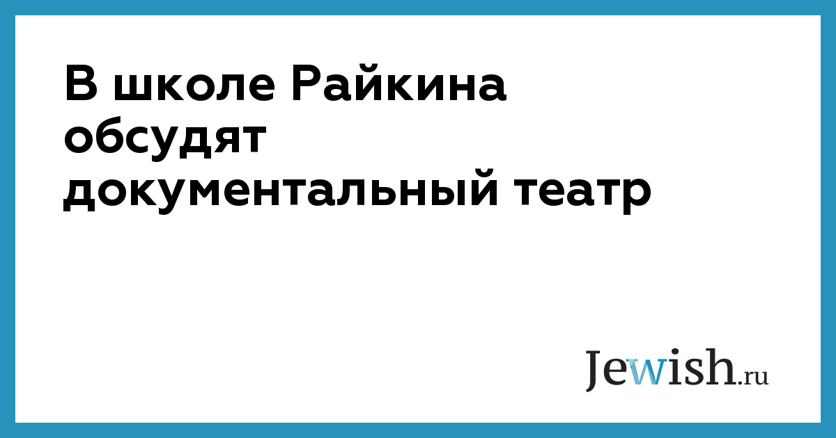 В школе Райкина обсудят документальный театр