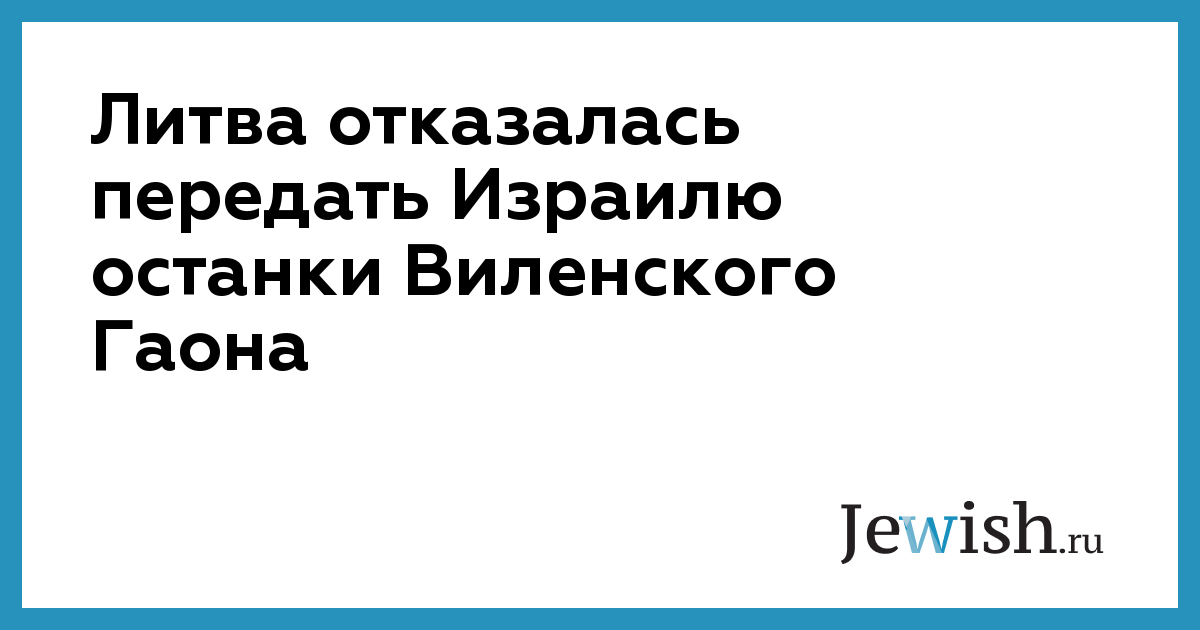 Вопрос передачи останков Виленского Гаона из Вильнюса в Иерусалим обсудили на встрече глав правительств Израиля и Литвы 29 января. Израильский премьер Биньямин Нетаньяху обратился к литовскому коллеге Саулюсу Сквярнялису с просьбой о переносе останков, но получил отрицательный ответ. Об этом сообщает литовский портал DELFI.