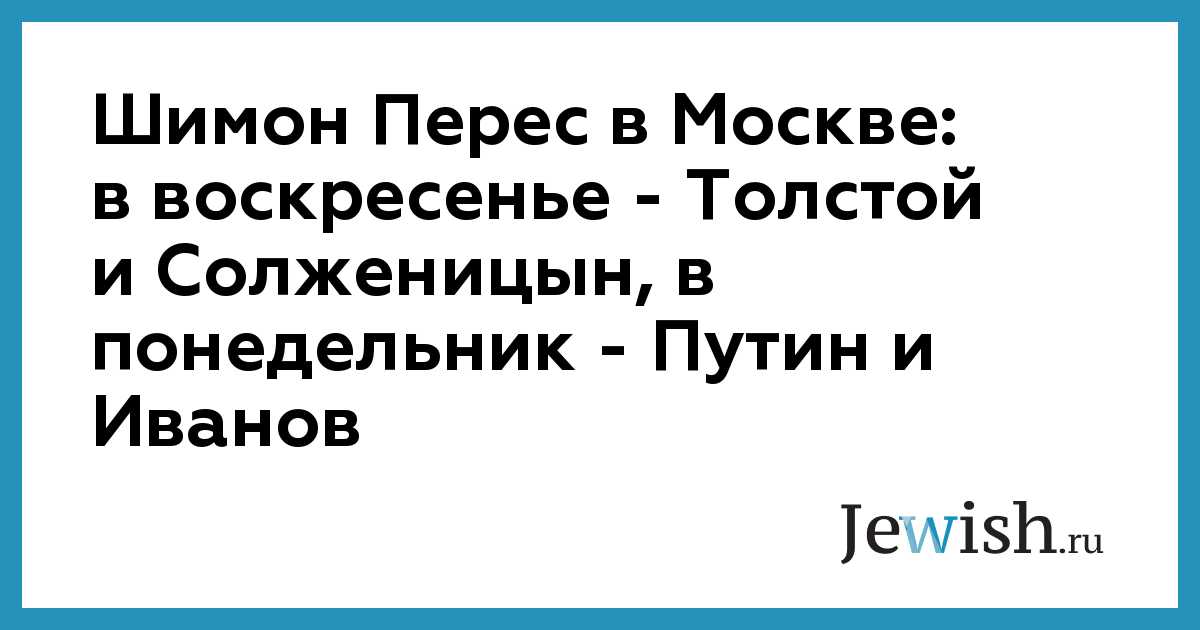 Шимон Перес в Москве: в воскресенье — Толстой и Солженицын, в понедельник — Путин и Иванов
