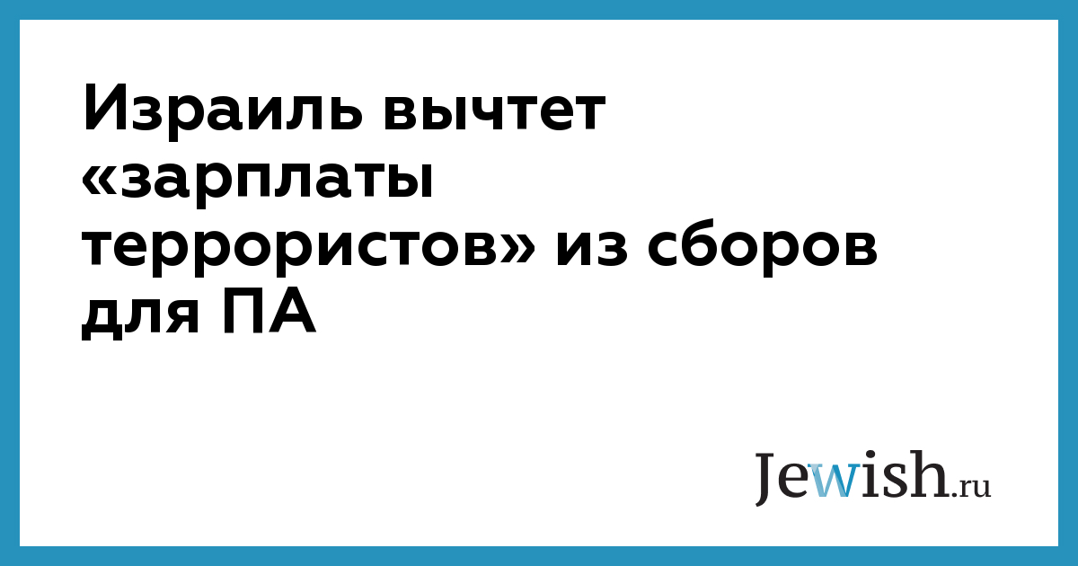 Израиль вычтет «зарплаты террористов» из сборов для ПА