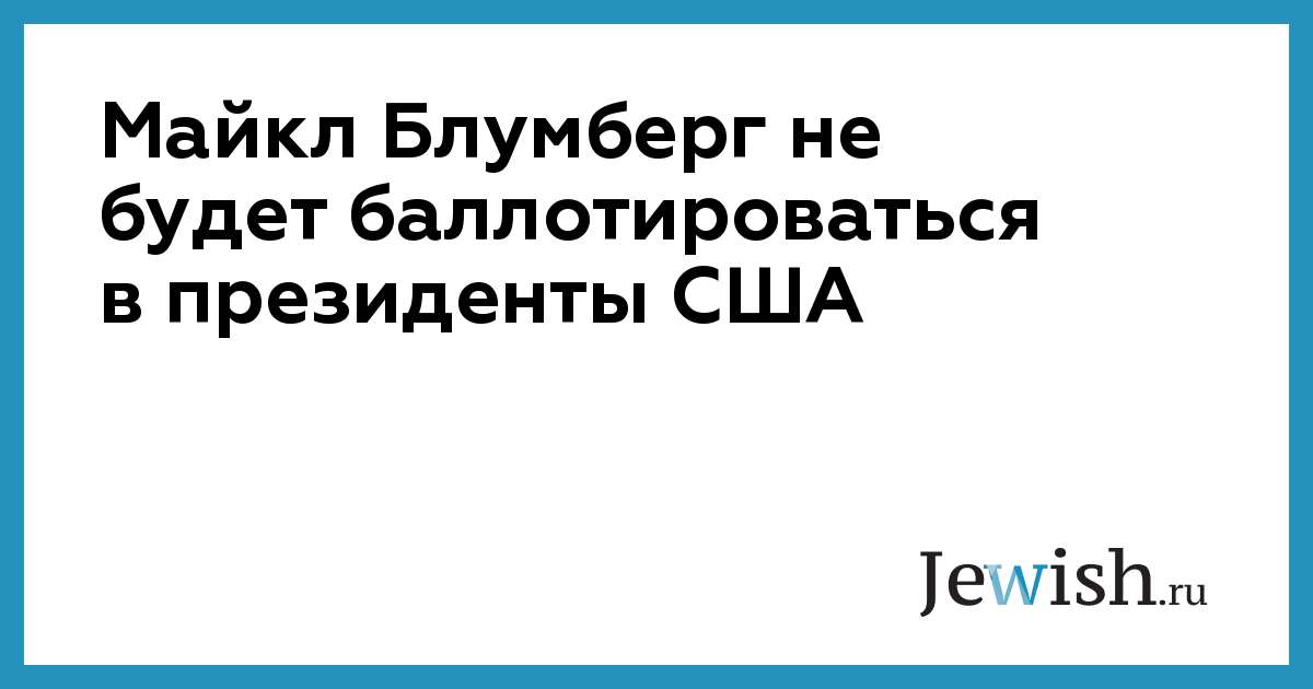 Миллиардер и бывший мэр Нью-Йорка Майкл Блумберг сообщил, что он не собирается баллотироваться в президенты США, пишет РБК со ссылкой на заявление, опубликовано на сайте подконтрольного ему агентства Bloomberg.