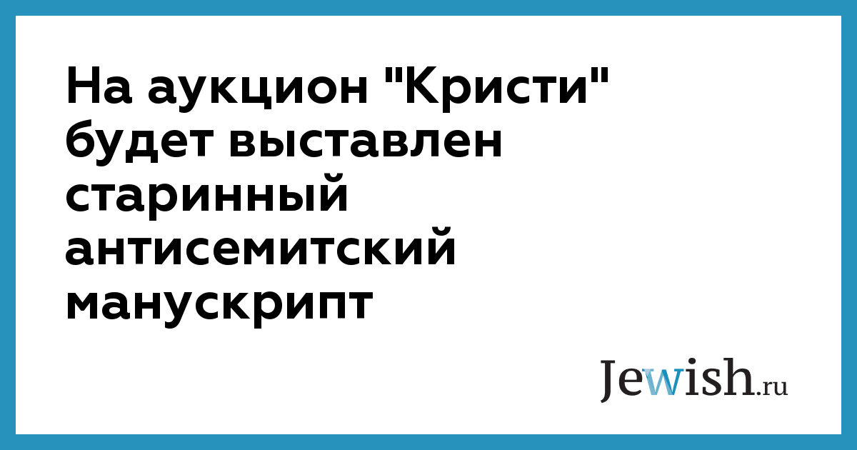 На аукцион "Кристи" будет выставлен старинный антисемитский манускрипт