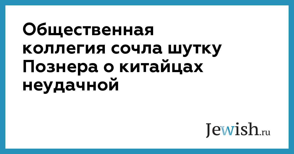 Общественная коллегия по жалобам на прессу не нашла в неудачной шутке журналиста Владимира Познера о китайцах признаков расизма или неприязни, передает РИА «Новости». Комиссия также призвала представителей СМИ к «максимальной осмотрительности» при использовании слов, которые могут быть расценены как обидные.