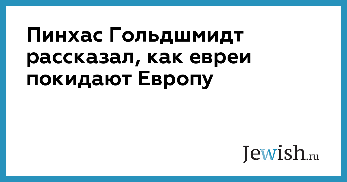 Пинхас Гольдшмидт рассказал, как евреи покидают Европу