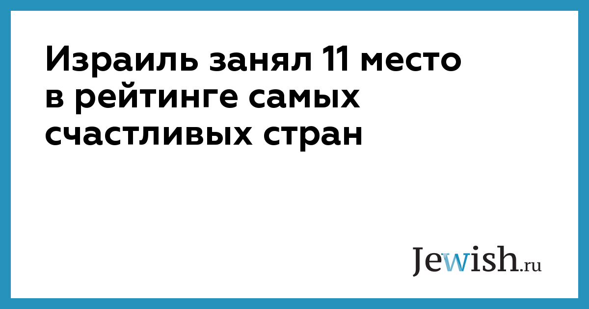 По данным World Happiness Report, Израиль занимает 11 место в рейтинге самых счастливых стран мира. Отчет ежегодно готовится и публикуется одним из подразделений ООН с целью выявления оптимальных путей стабильного развития.