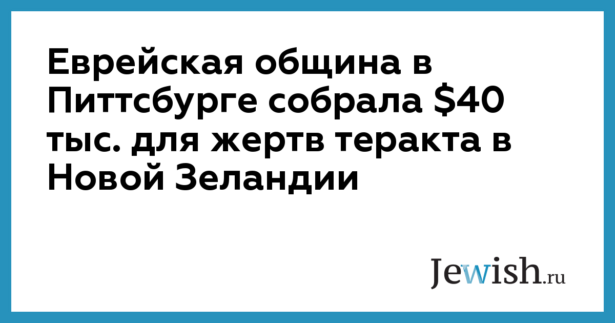 Члены еврейской общины «Древо Жизни» в Питтсбурге (США), пережившие нападение на синагогу в октябре 2018 года, собрали почти 40 тысяч долларов в пользу жертв двух страшных терактов в мечетях Аль-Нур и Линвуд в Крайстчерче (Новая Зеландия), где было убито 50 человек. Пожертвования собирались через краудфандинговую платформу GoFundMe.