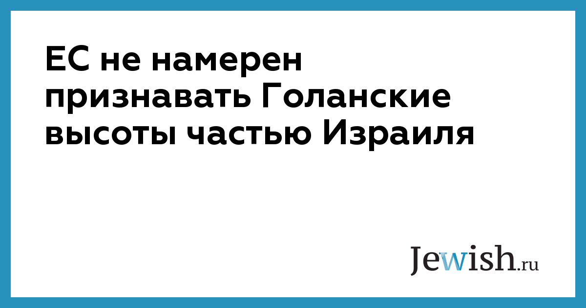 «Позиция ЕС не изменилась. Евросоюз в соответствии с международным правом не признает суверенитета Израиля над территориями, оккупированными им с июля 1967 года, включая Голанские высоты, и не рассматривает их как часть израильской территории»,— сказала «РИА Новости» госпожа Косьянчич.