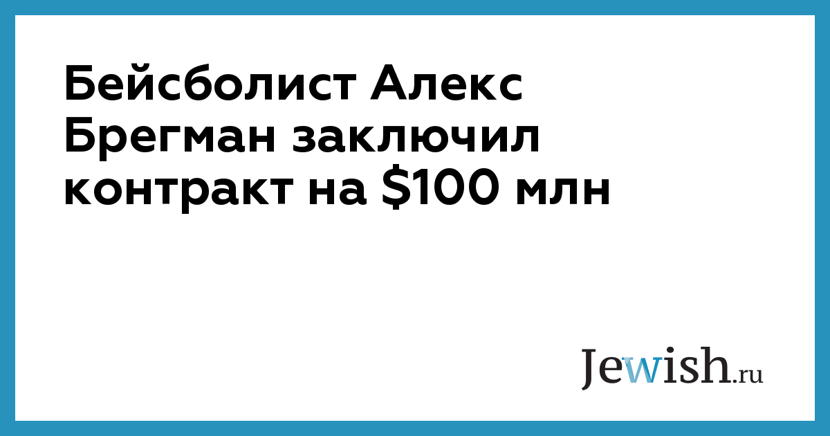 Американский бейсболист еврейского происхождения Алекс Брегман подписал контракт на шесть лет на сумму 100 млн долларов с клубом «Хьюстон Астрос», который играет в Главной лиге бейсбола. Об этом пишет Arutz Sheva, называя заключенный договор крупнейшей сделкой с участием еврейского спортсмена. Контракт вступит в силу в конце сезона 2019 года.