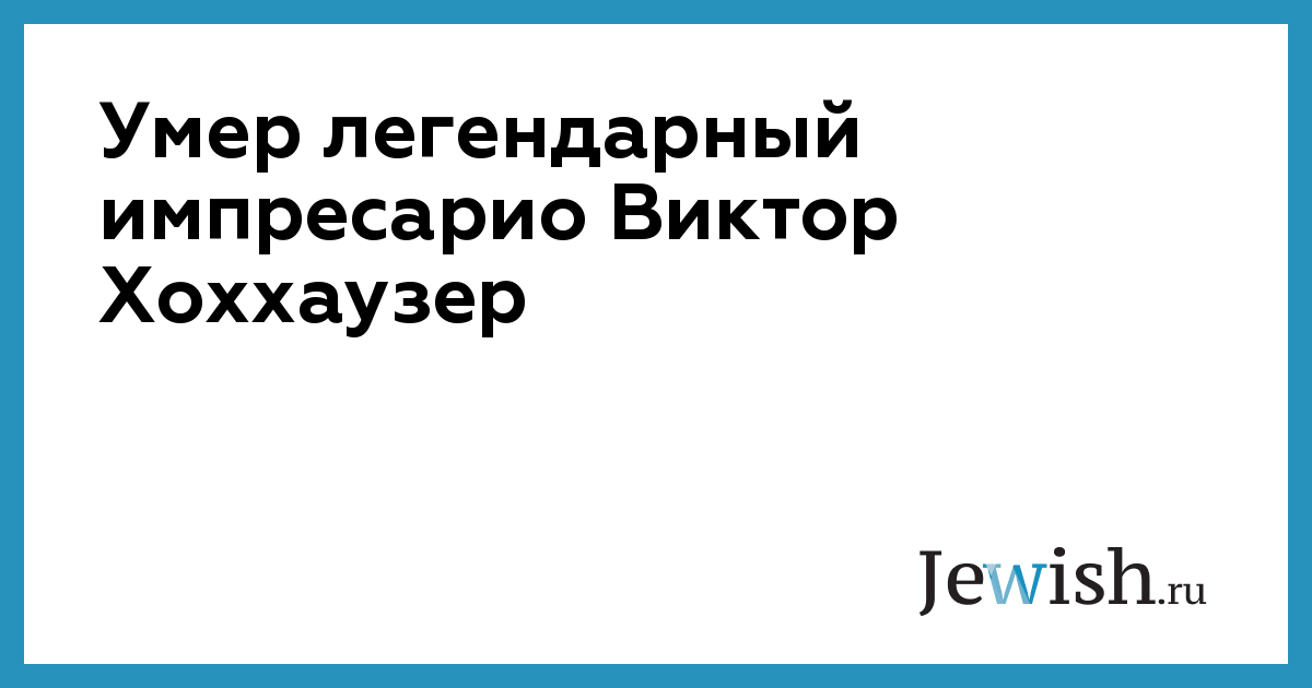 В Лондоне на 96-м году жизни скончался выдающийся импресарио Виктор Хоххаузер, деятельность которого на протяжении многих лет была связана с представлением в странах Запада множества русских классических музыкальных выступлений и балетов, в том числе, выступления Давида Ойстраха, Мстислава Ростроповича, Эмиля Гилельса, Святослава Рихтера, на протяжении многих лет устраивали гастроли Ансамбля народного танца Игоря Моисеева и Мариинского театра (в советские годы – Кировский). Об этом пишет Jewich Chronicle.