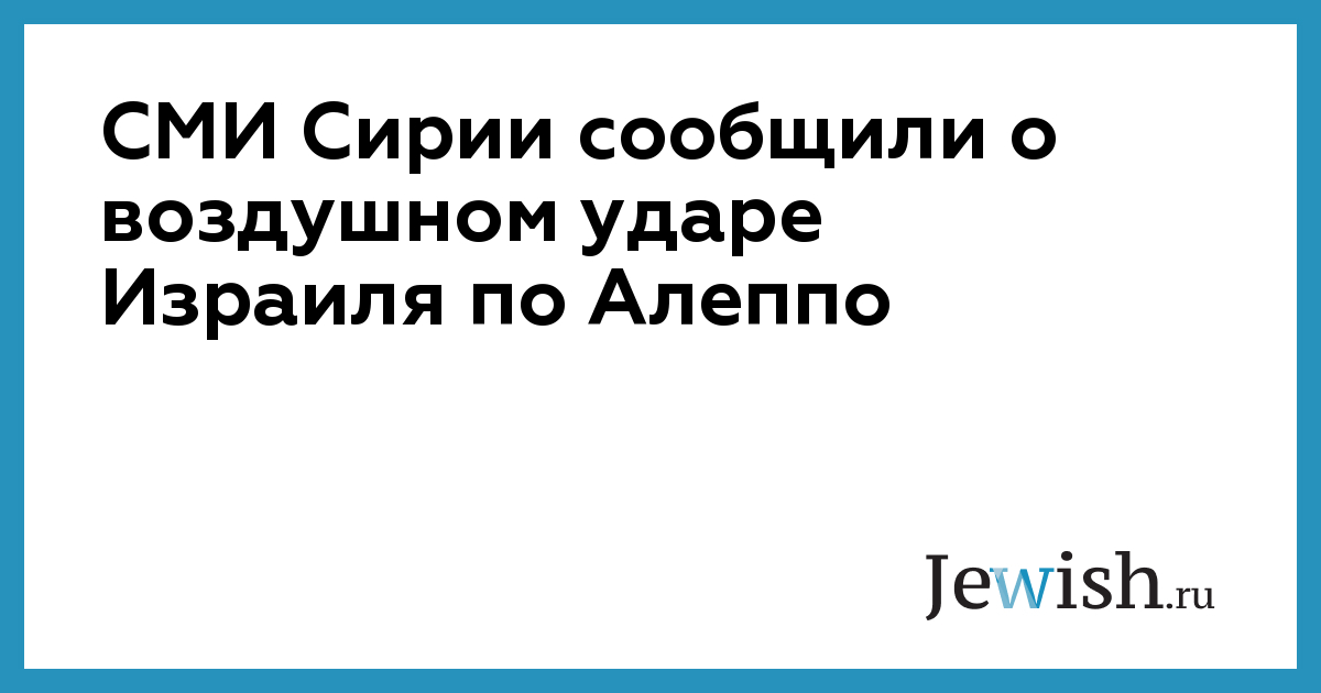 СМИ Сирии сообщили о воздушном ударе Израиля по Алеппо