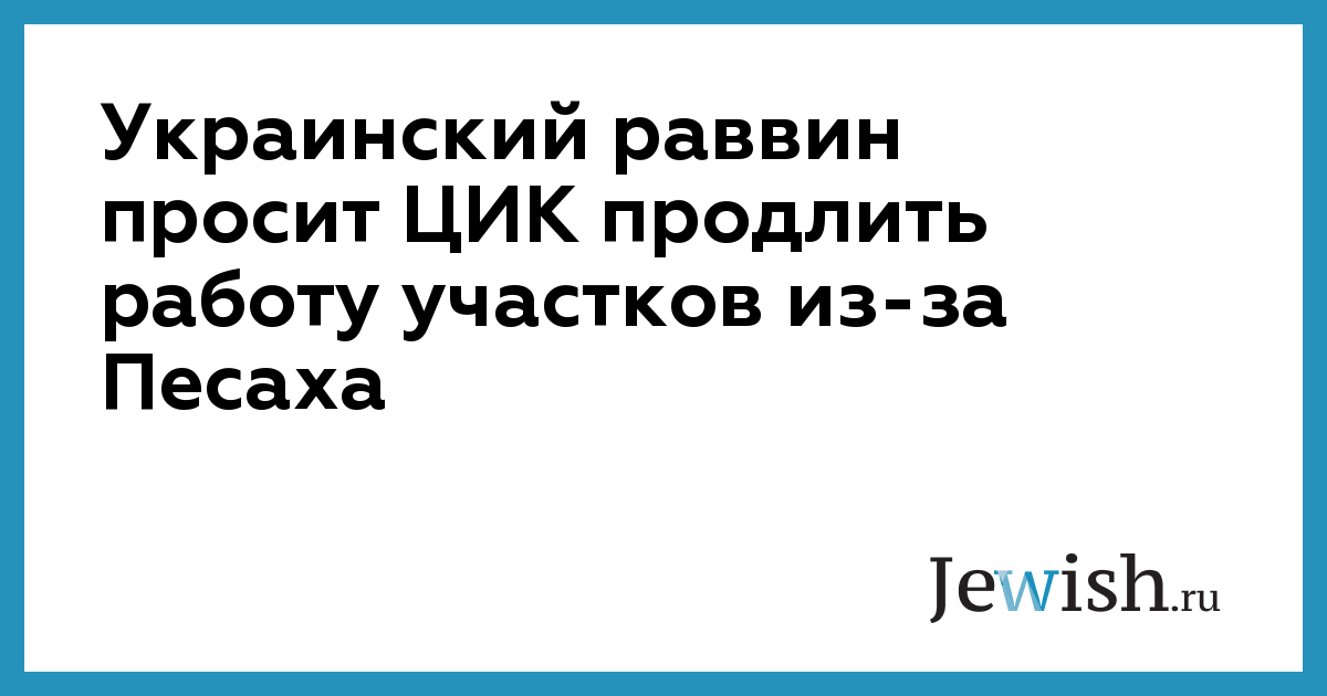 «В связи с тем, что второй тур выборов президента Украины приходится на второй день праздника Песах, во время которого по иудейским законам запрещена какая-либо работа до восхода звезд, и с целью предоставления гражданам, которые исповедуют иудаизм, возможности для реализации своего избирательного права, прошу 21 апреля 2019 года продлить работу некоторых избирательных участков до 22:30, хотя бы по одному участку в больших городах», — говорится в письме главного раввина к руководству ЦИК, фотокопия которого опубликована на его странице в Facebook.