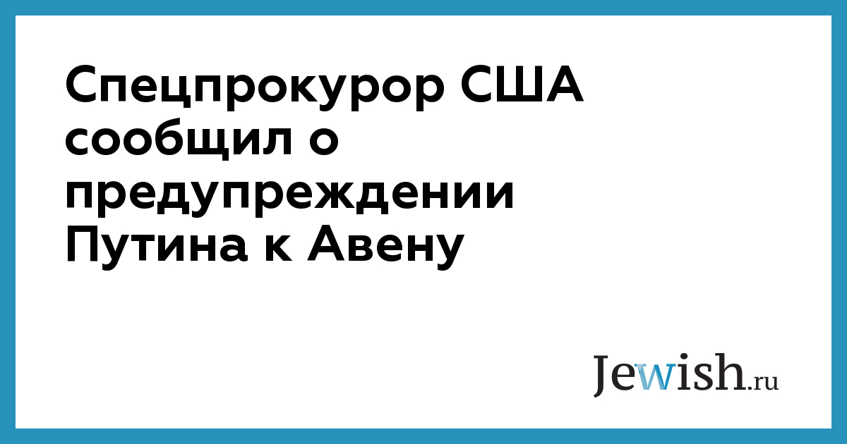 Спецпрокурор США сообщил о предупреждении Путина к Авену