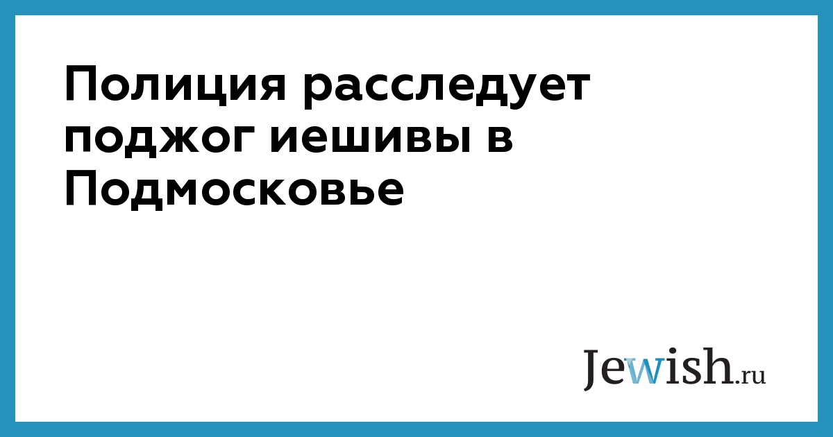 Полиция расследует поджог иешивы в Подмосковье