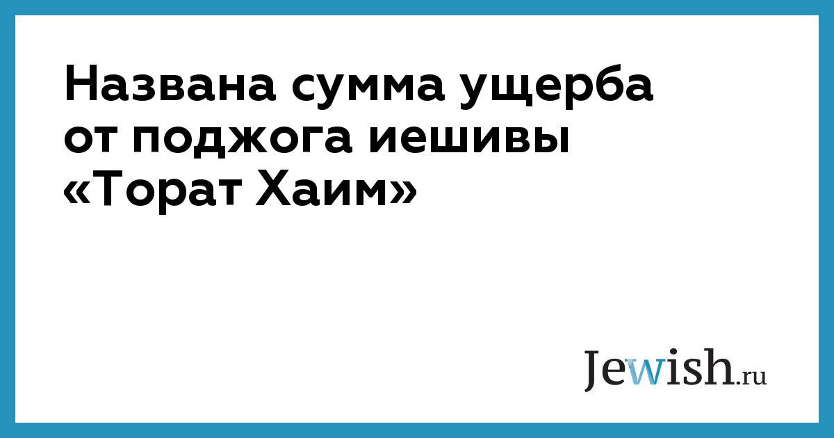 Названа сумма ущерба от поджога иешивы «Торат Хаим»