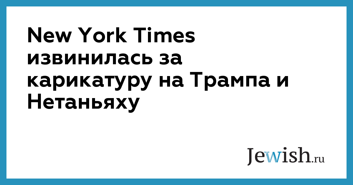 Газета New York Times извинилась за опубликованную на страницах газеты карикатуру на президента США Дональда Трампа и премьер-министра Израиля Биньямина Нетаньяху. Как сообщает «Коммерсантъ», многие израильские и американские СМИ назвали изображение антисемитским.