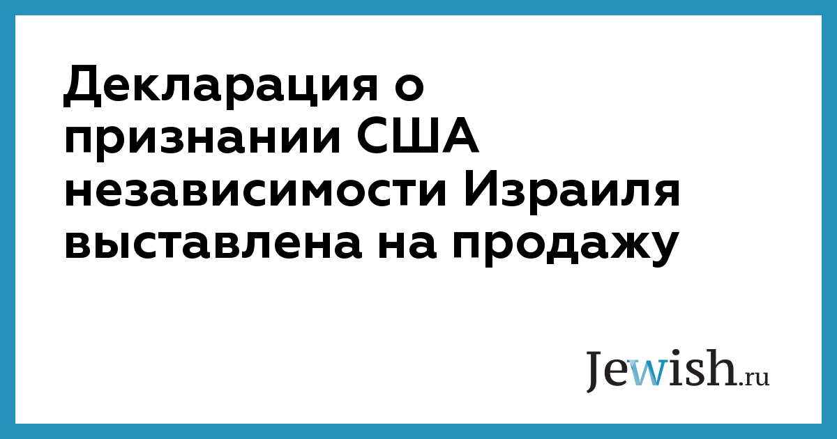 Компания Raab Collection, специализирующаяся в сфере торговли историческими автографами и редкими документами, выставила на продажу единственную подписанную копию документа о признании США независимости государства Израиль, пишет Times of Israel.