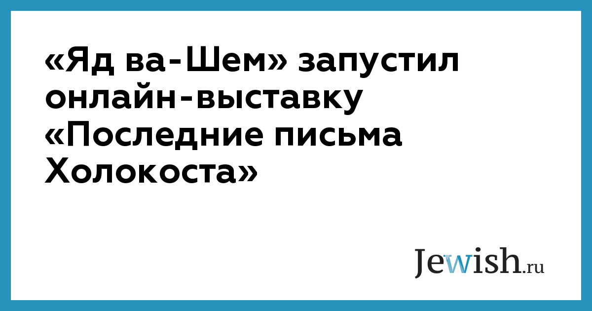 Всемирный центр памяти жертв Холокоста «Яд ва-Шем», расположенный в Иерусалиме, запустил новую онлайн-выставку под названием «Последние письма Холокоста: 1944», на которой можно увидеть последние письма, отправленные родным и близким евреями, столкнувшимися с преследованиями нацистов по всей Европе.