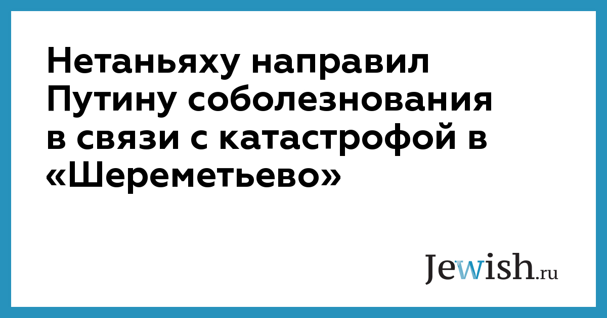 Как сообщает Newsru.co.il, в понедельник, 6 мая, премьер-министр Израиля Биньямин Нетаньяху выразил соболезнования народу России и президенту Владимиру Путину в связи с авиакатастрофой в московском аэропорту «Шереметьево», в результате которой погиб 41 человек.