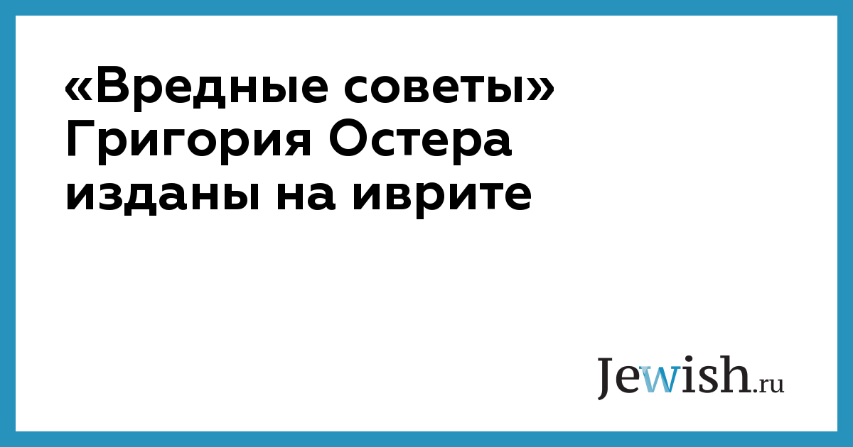 В Израиле опубликована и поступила в продажу переведенная на иврит самая знаменитая книга писателя и сценариста Григория Остера «Вредные советы». Переводчиком выступил доктор Ронен Сонис.