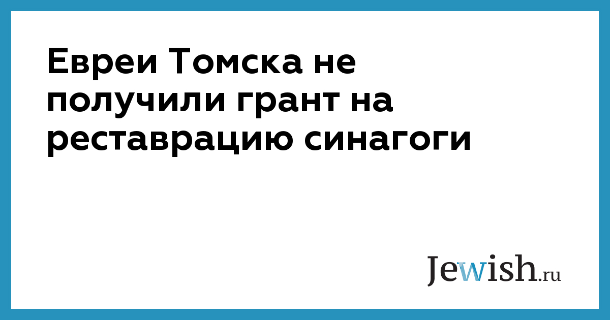 Евреи Томска не получили грант на реставрацию синагоги