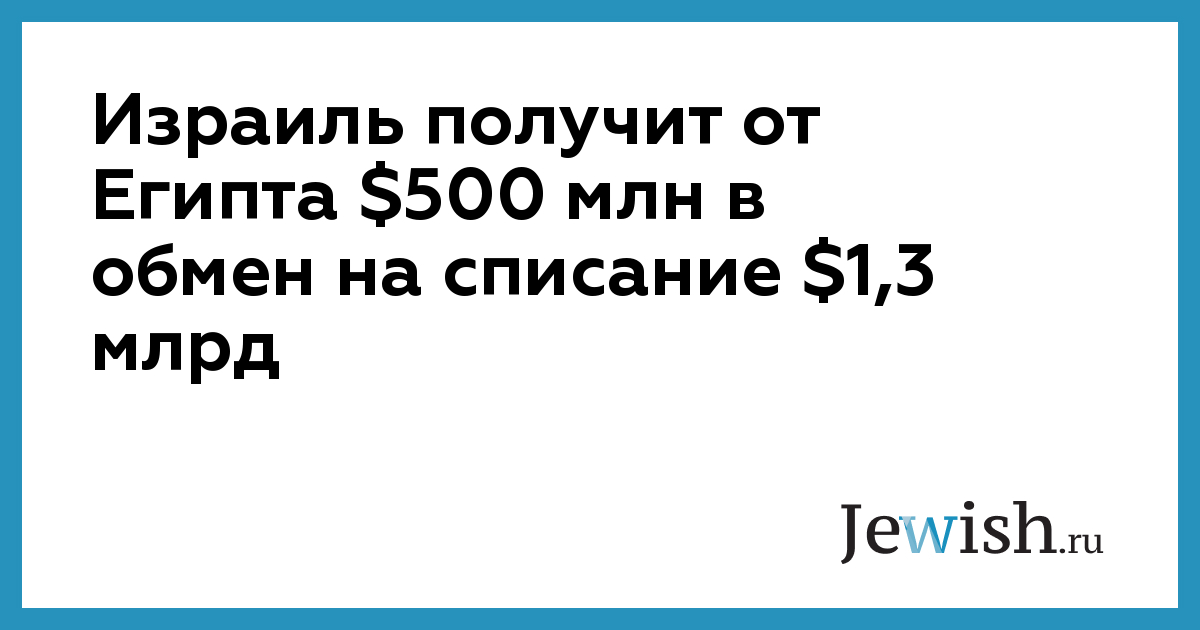 Израиль получит от Египта $500 млн в обмен на списание $1,3 млрд
