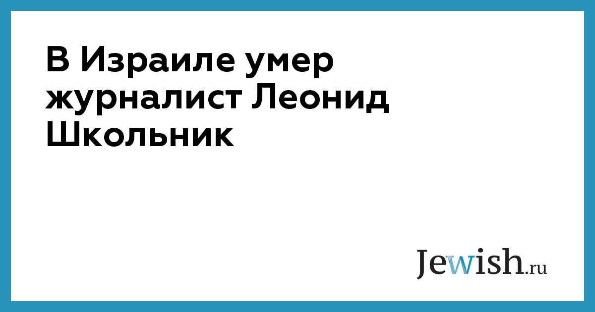 В пятницу, 21 июня, в иерусалимской больнице «Адаса Ар а-Цофим» на 74-м году жизни скончался Леонид Школьник, пишет Newsru.co.il. Школьник был журналистом, поэтом, редактором русского издания газеты «Форвертс» (США), редактором международной интернет-газеты «Мы здесь».
