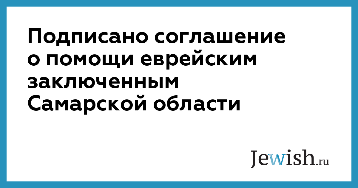 Федерация еврейских общин России и УФСИН по Самарской области подписали соглашение о сотрудничестве. Документ регулирует следующие аспекты взаимодействия структур: список раввинов, имеющих доступ к работе с заключенными; разрешенную к передаче еврейскжую литературу; места на территории колоний, отведенные для богослужений и график посещения заключенных.