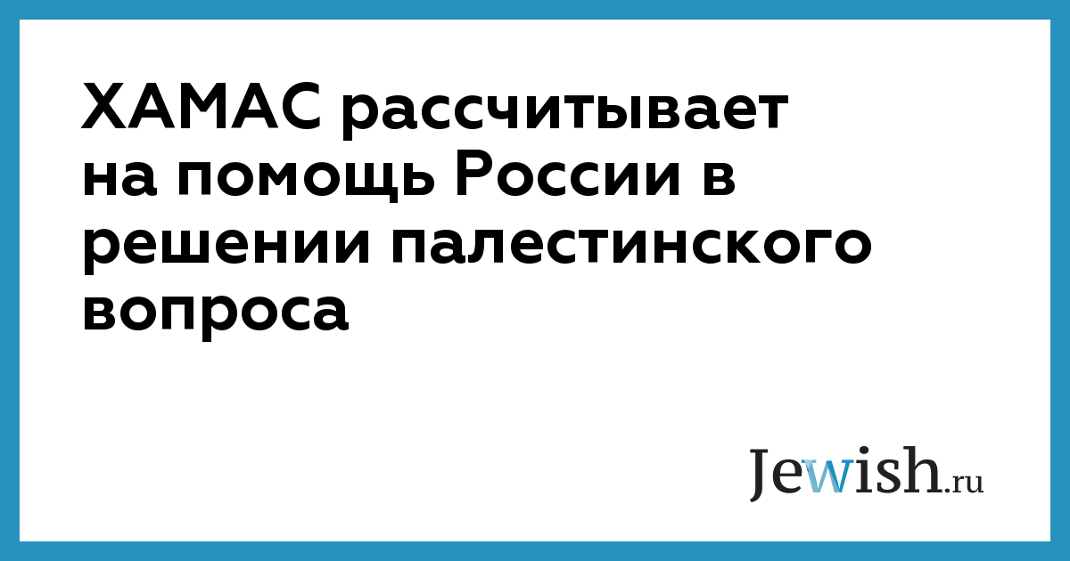 ХАМАС рассчитывает на помощь России в решении палестинского вопроса