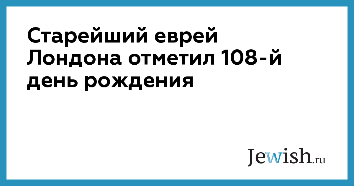В еврейском доме престарелых в Лондоне прошла вечеринка по случаю 108-го дня рождения старейшего горожанина, пишет JTA со ссылкой на Jewish Chronicle».