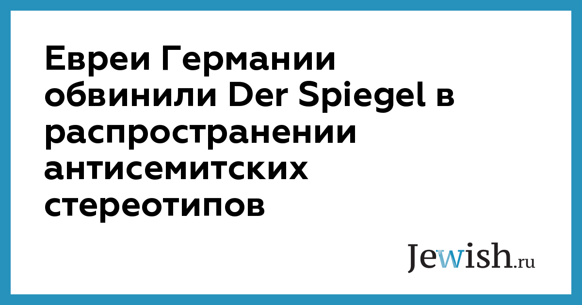 Евреи Германии обвинили Der Spiegel в распространении антисемитских стереотипов
