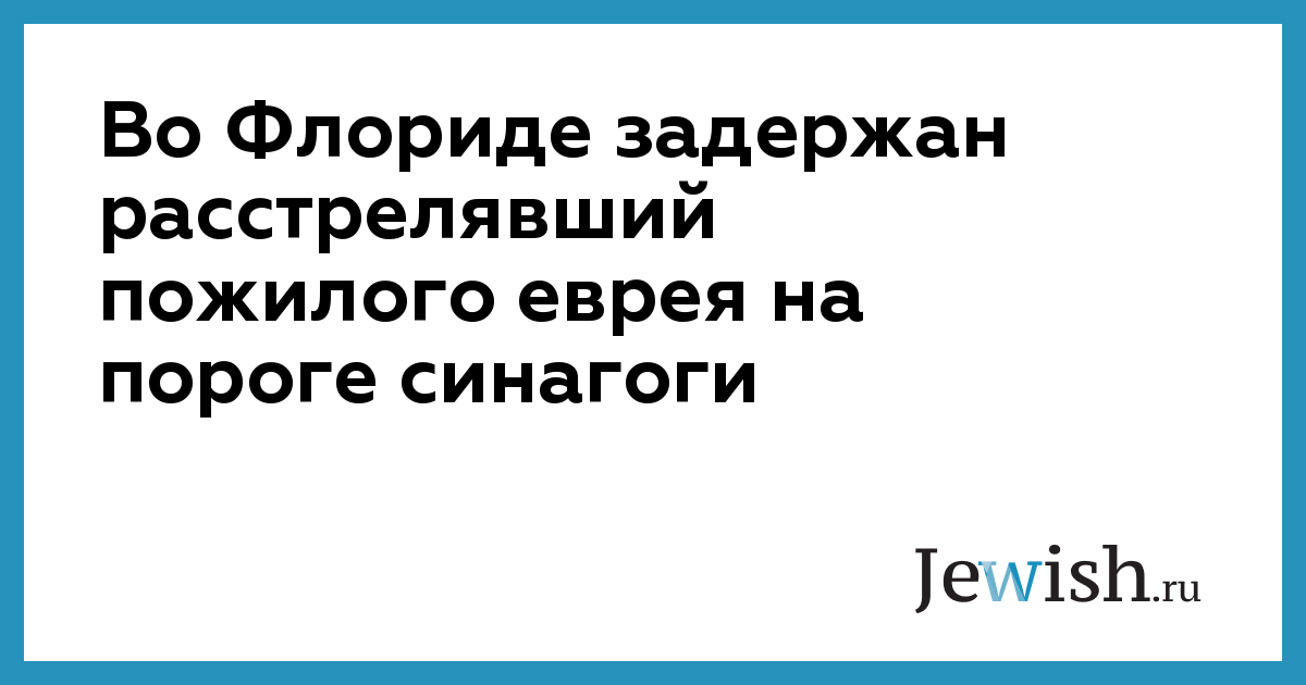 Во Флориде задержан расстрелявший пожилого еврея на пороге синагоги
