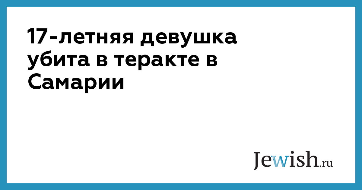 Отец и двое его детей – девушка 17 лет и юноша 19 лет – получили тяжелые ранения в результате взрыва бомбы у источника Эйн-Бувин в Самарии. Девушка скончалась от полученных травм, ее отец и брат госпитализированы. По сообщению Маген Давид Адом, отец молодых людей находится в состоянии средней тяжести, состояние его сына оценивалось как тяжелое. Девушке, наиболее пострадавшей от взрыва, была оказана немедленная помощь на месте. Однако спасти ее не удалось.