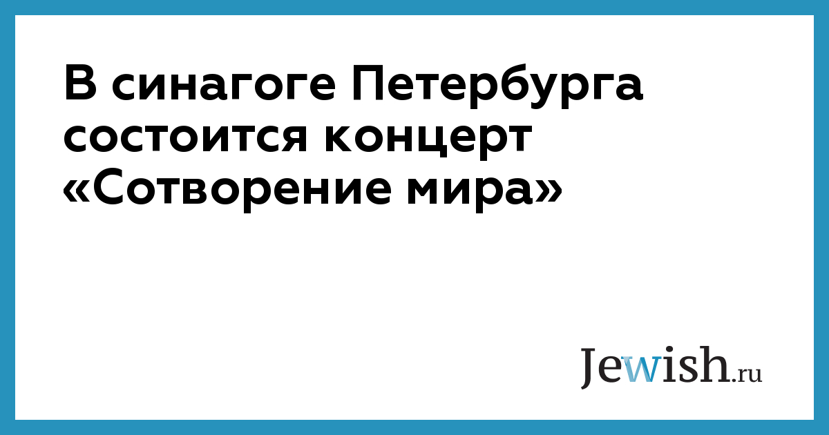 В синагоге Петербурга состоится концерт «Сотворение мира»
