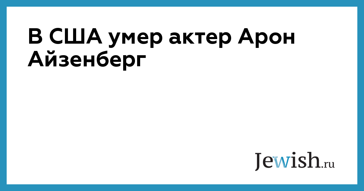 Отмечается, что на протяжении многих лет у Айзенберга были серьезные проблемы со здоровьем. «С огромным сожалением и грустью объявляю, что моя любовь и лучший друг Арон Айзенберг сегодня скончался», — сообщила жена актера Малисса Лонго на своей странице в Facebook.
