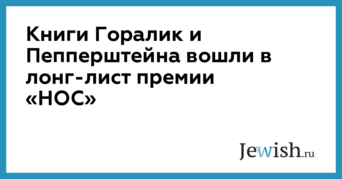 Книги Линор Горалик и Павла Пепперштейна вошли в длинный список литературной премии «НОС». Полный список включает 16 авторов. Победителя назовут в начале 2020 года, сообщает РИА «Новости» со ссылкой на пресс-службу награды.