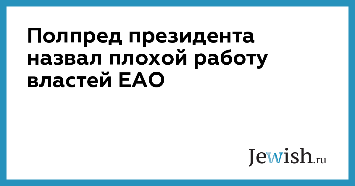 Полпред президента РФ в Дальневосточном федеральном округе Юрий Трутнев назвал плохой работу администрации Еврейской автономной области во время визита в регион. Трутнев указал, что ЕАО остается единственным регионом Дальнего Востока, где до сих пор не завершено обследование оказавшихся в зоне паводка домов. Из-за этого еще не все пострадавшие получили компенсации для расселения.