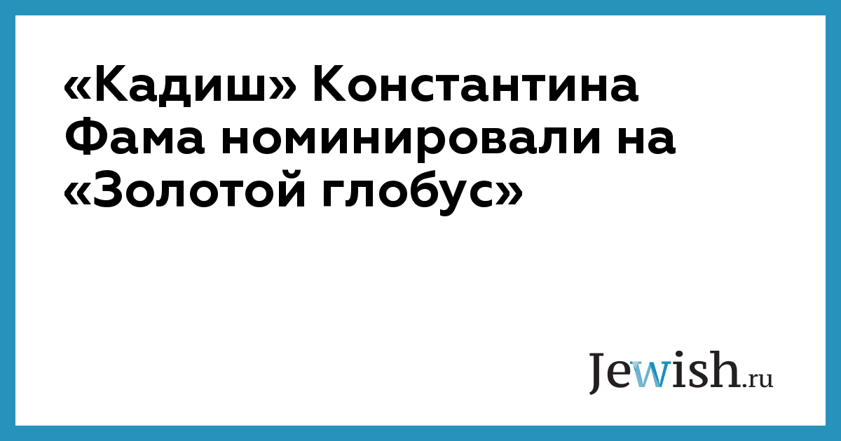 Фильм «Кадиш» режиссера Константина Фама вошел в лонг-лист претендентов на американскую премию «Золотой глобус» в номинации «Лучший фильм на иностранном языке». Картина совместного производства России и Белоруссии рассказывает о том, как завещание бывшего узника концлагеря сталкивает и переворачивает жизнь двух молодых людей из разных миров, проливая свет на трагическую историю их семьи. «Кадиш» стал первым фильмом на тему Холокоста, который выдвигается на премию от России.