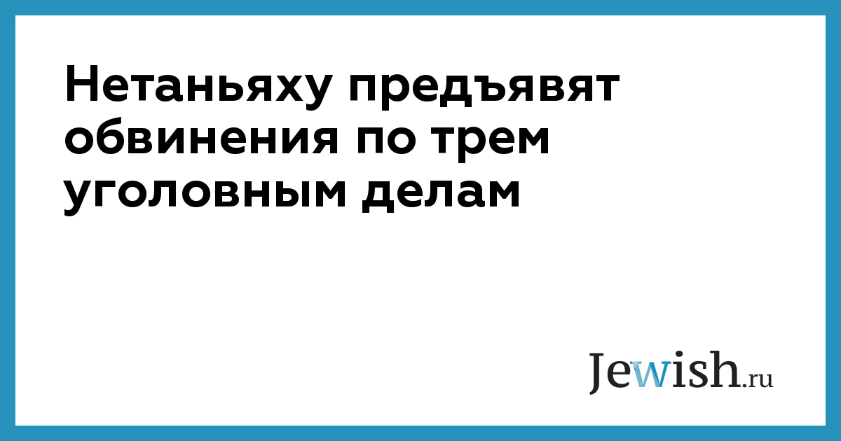 Вечером в четверг, 21 ноября, юридический советник правительства Израиля Авихай Мандельблит заявил о передаче в суд трех дел в отношении действующего премьер-министра Биньямина Нетаньяху. Главе правительства будут предъявлены обвинения во взяточничестве, мошенничестве и нарушении общественного доверия. Мандельблит заявил, что принял решение о передаче дела в суд «с тяжелым сердцем и верой в главенство закона».
