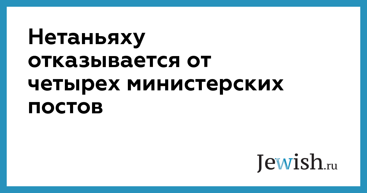 Глава правительства Израиля Биньямин Нетаньяху заявил сегодня, что до 1 января 2020 года покинет все министерские посты, кроме кресла премьера. В настоящее время Нетаньяху держит портфели четырех министерств: здравоохранения, социального обеспечения, сельского хозяйства и по делам диаспоры. Заявление Нетаньяху стало ответом на петицию, поданную в Высший суд справедливости группой активистов. Авторы петиции требовали снятия Нетаньяху со всех постов в связи с передачей в суд трех дел в отношении политика.