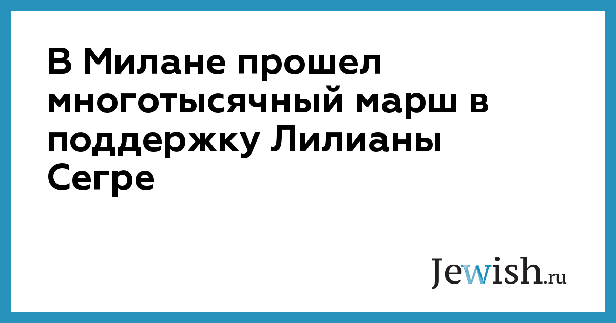 Во вторник, 10 ноября, в Милане состоялся многотысячный марш в поддержку 89-летней Лилианы Сегре, которая в последние месяцы стала мишенью атак со стороны антисемитов. Лилиана Сегре — пожизненный сенатор Итальянской Республики, бывшая узница Освенцима и Равенсбрюка, которая потеряла большую часть семьи в концлагерях. Сегре занимается активной общественной деятельностью, участвует в образовательных проектах о Холокосте и продвигает борьбу с расизмом, дискриминацией и антисемитизмом в итальянском парламенте.
