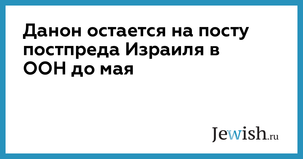 Премьер-министр Израиля Биньямин Нетаньяху решил оставить на посту постоянного представителя Израиля в ООН Дани Данона до мая 2020 года.