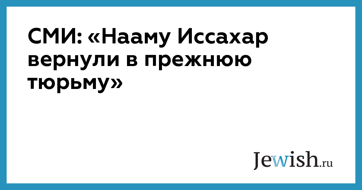 СМИ: «Нааму Иссахар вернули в прежнюю тюрьму»