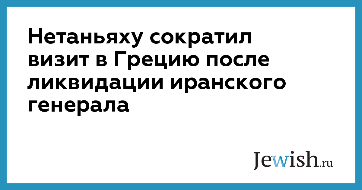 Премьер-министр Израиля Биньямин Нетаньяху сократил визит в Грецию после сообщения о ликвидации в Багдаде командира элитного иранского подразделения КСИР «Аль-Кудс» генерал-майора Касема Сулеймани. Нетаньяху отбыл в Афины в четверг, 2 января, для подписания соглашения с Грецией и Кипром о строительстве газопровода.