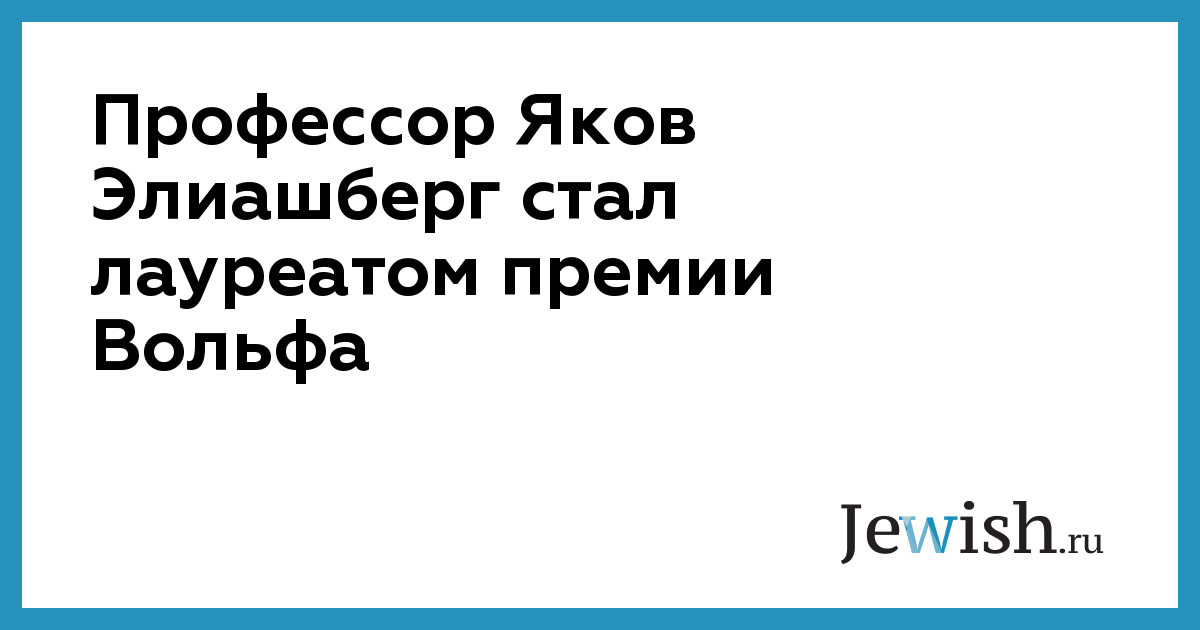 Профессор Яков Элиашберг стал лауреатом премии Вольфа