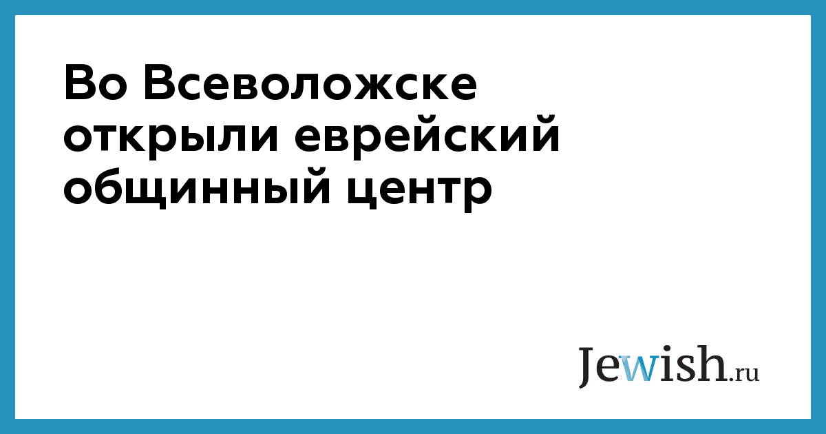 В городе Всеволожске Ленинградской области 1 марта открыли еврейский общинный центр. Об этом сообщили в еврейской общине Петербурга. Центр будет действовать на территории городского спортивно-развлекательного комплекса «Успех». В нем будут проходить шаббаты и праздники, уроки Торы, лекции, детские мероприятия.